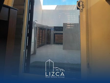 - Patio posterior con asador, barra y sink, sala de jardín y pasto artificial, pérgola iluminada.